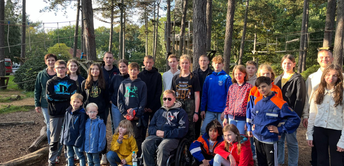 Das sind die Schlagwörter, womit sich die alljährliche Herbstfahrt der Jugendfeuerwehr sehr gut beschreiben lässt. Dieses Jahr konnte, aufgrund der COVID-19-Pandemie, die erste Herbstfahrt seit 2019 stattfinden und die Jugendlichen erwartete wieder ein abwechslungsreiches Programm. Neben zwei Geburtstagen, die es zu feiern gab, und den regelmäßigen Schwimmbadbesuchen, wurde ausgiebig das Parkangebot erkundschaftet. Am Dienstag folgte das erste Highlight der Tour, der Besuch im Hochseilgarten. Hier hatten die Jugendlichen viel Spaß und es lag ein besonderer Fokus darauf gegenseitig aufeinander zu achten und zu unterstützen.